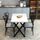 კომპლექტში შედის: მაგიდა და 4 ცალი მეტალის სკამი.