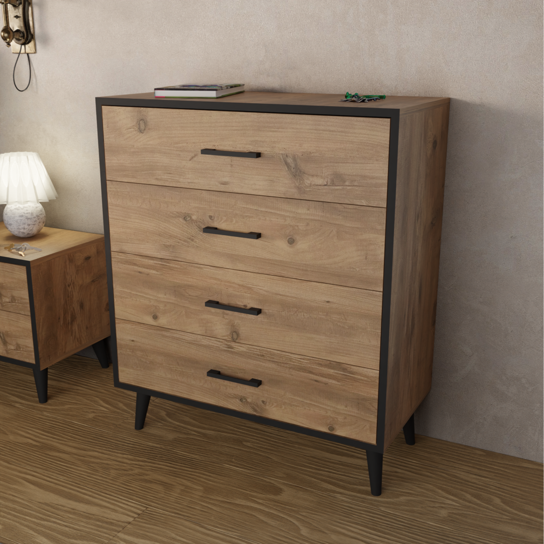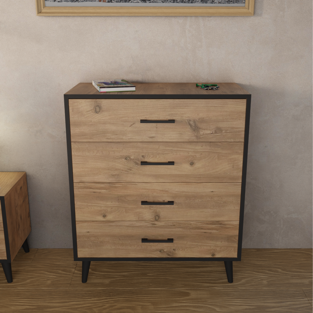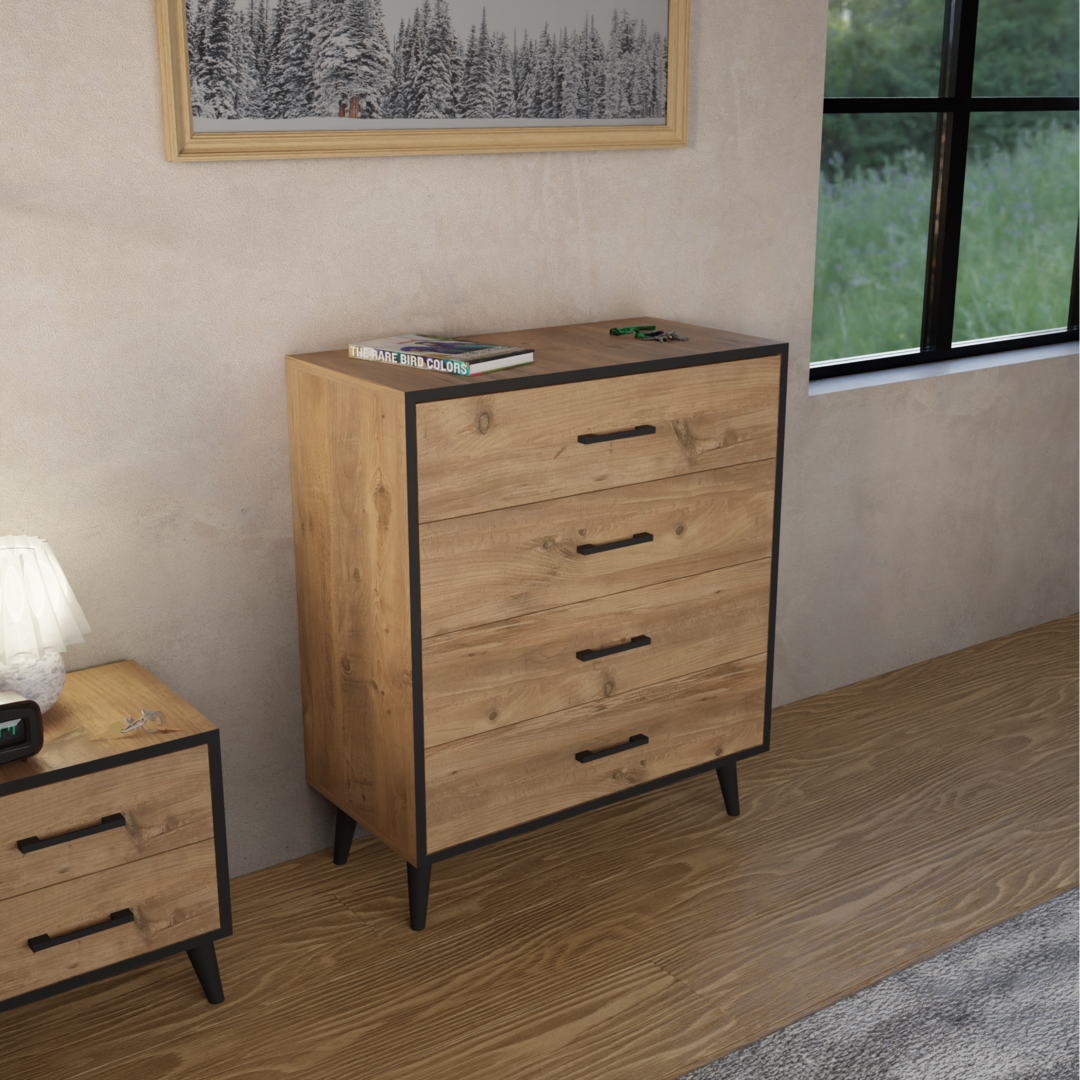 კომოდი 4 უჯრით ფიჭვის ფაქტურით (FD997)