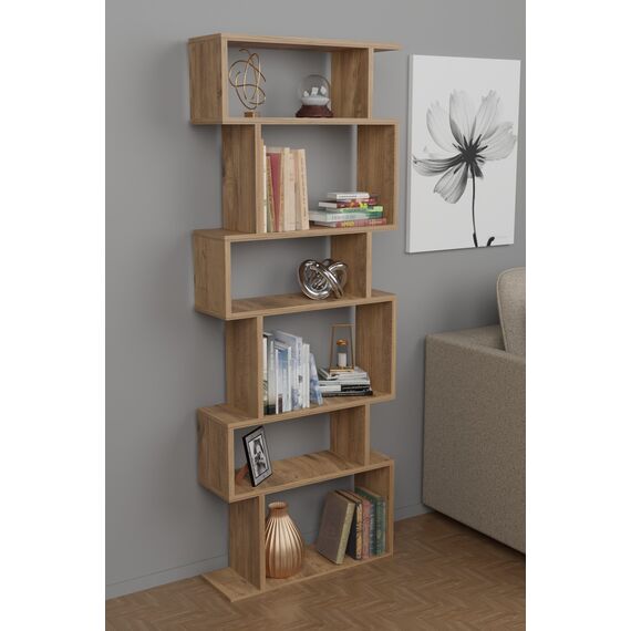 წიგნების 6 დონიანი თარო ფიჭვის ფაქტურით (FD1003)