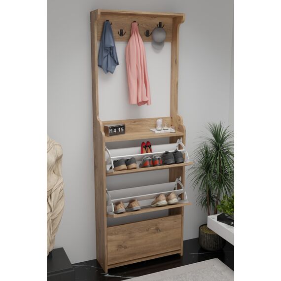 ფეხსაცმლის კარადა ტანსაცმლის საკიდით ფიჭვის ფაქტურით (FD1002)
