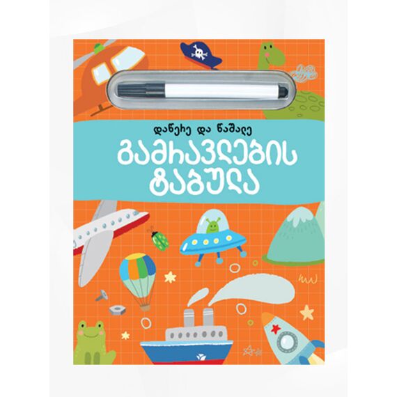 წიგნს ასევე მოყვება ფლომასტერი, რომელიც მარტივად იშლება და ბავშვებს ამ წიგნის გამოყენება მრავალჯერადად შეეძლებათ.
