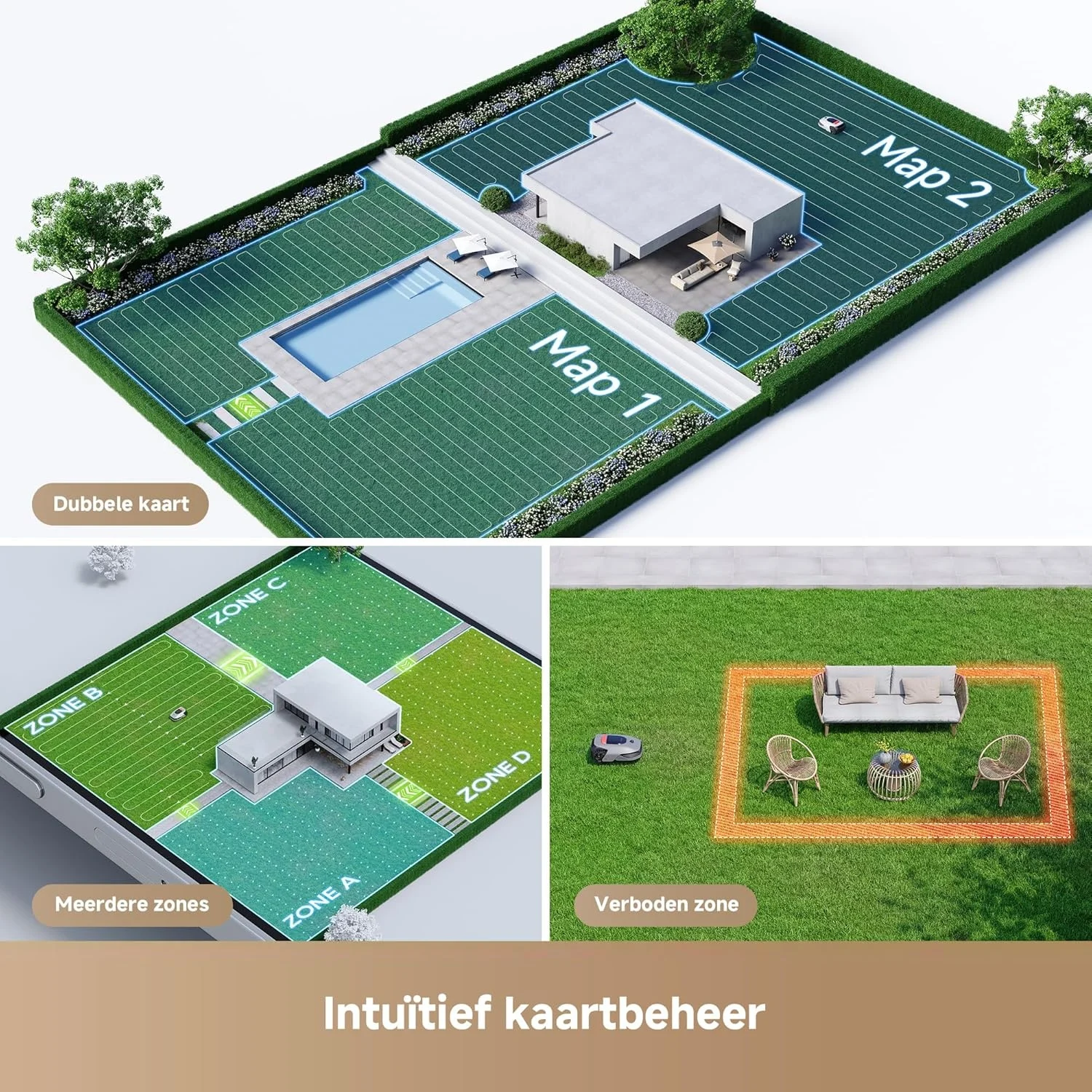 ჭკვიანი, ინტუიციური ზონების მართვა: თიბვის რუტინა ძალიან მარტივია; აღარ გჭირდებათ მთელი მოვლის პროცესის თვალყურის დევნება. რეალურ დროში ან დაგეგმილი თიბვის ამოცანები, თიბვის ან აკრძალვის ზონები და დროებითი ან წინასწარ განსაზღვრული ზონები შეიძლება დაყენდეს Dreamehome აპლიკაციის საშუალებით.