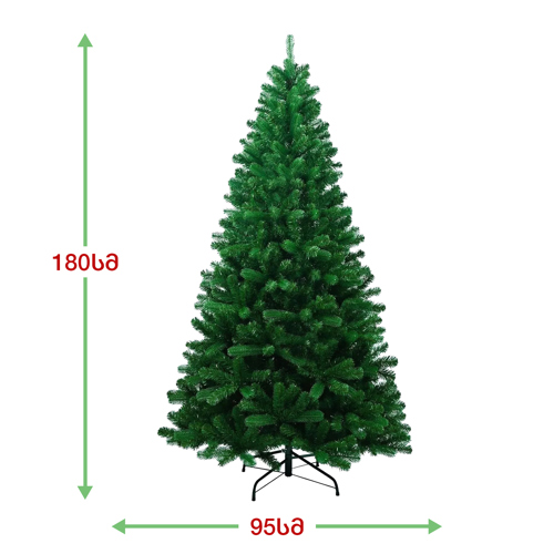 სადა მწვანე ნაძვის ხე: გამძლე დრეკადი მეტალის ტოტებით და ჯანმრთელობისთვის უსაფრთხო მასალისგან დამზადებული წიწვებით. მეტალის მყარი სადგამით და მთავარი ღერძით.