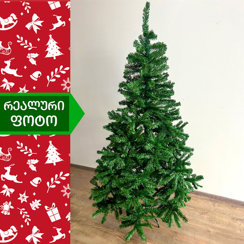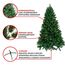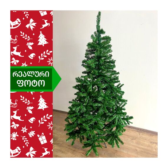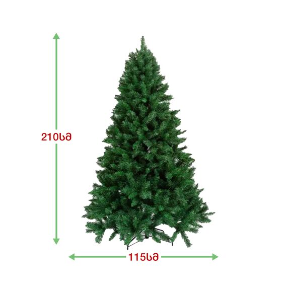 სადა მწვანე ნაძვის ხე: გამძლე დრეკადი მეტალის ტოტებით და ჯანმრთელობისთვის უსაფრთხო მასალისგან დამზადებული წიწვებით. მეტალის მყარი სადგამით და მთავარი ღერძით.