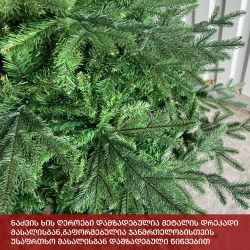 ბუნებრივის მსგავსი ნაძვის ხე: დრეკადი მეტალის ტოტებით და ჯანმრთელობისთვის უსაფრთხო მასალისგან დამზადებული შერეული ორი სახეობის სილიკონის და PVC წიწვით . მეტალის მყარი სადგამით და მთავარი ღერძით.