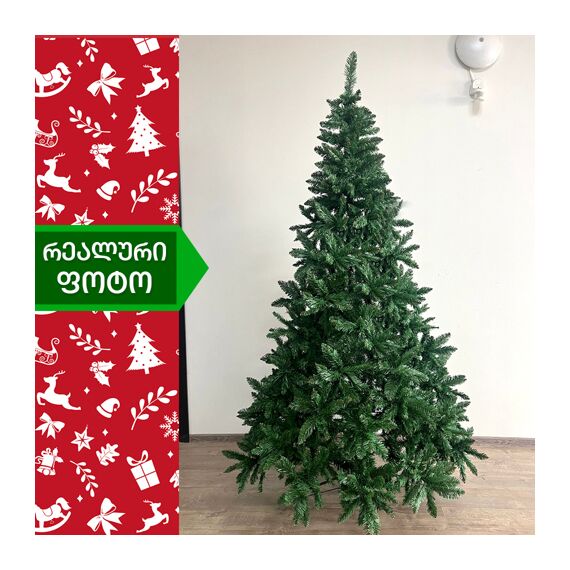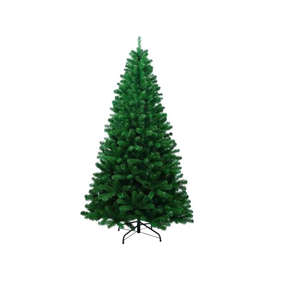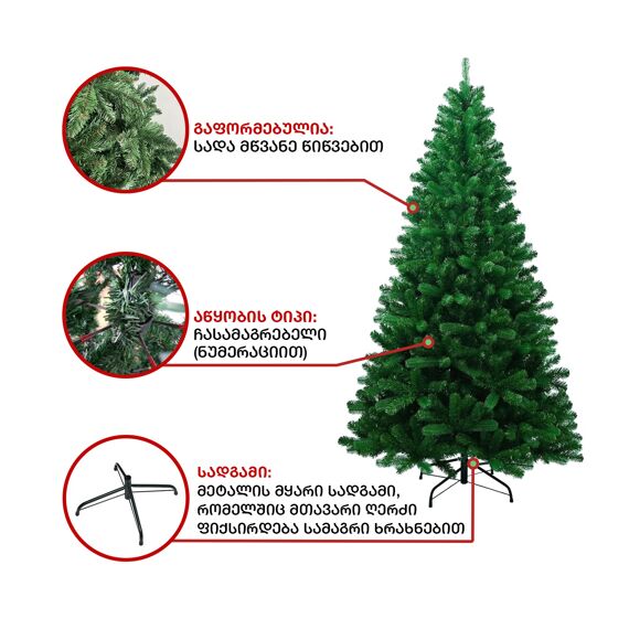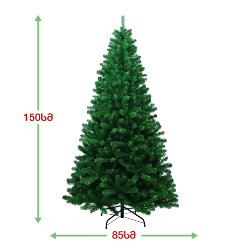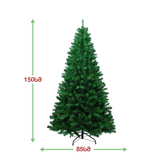 სადა მწვანე ნაძვის ხე: გამძლე დრეკადი მეტალის ტოტებით და ჯანმრთელობისთვის უსაფრთხო მასალისგან დამზადებული წიწვებით. მეტალის მყარი სადგამით და მთავარი ღერძით.