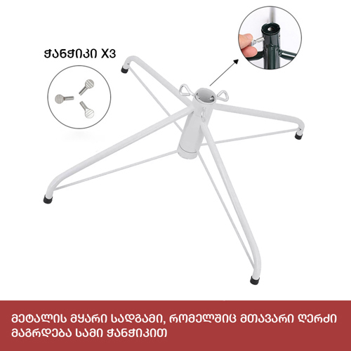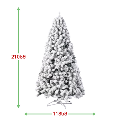 დათოვლილი ნაძვის ხე: გამძლე დრეკადი მეტალის ტოტებით და ჯანმრთელობისთვის უსაფრთხო მასალისგან დამზადებული წიწვებით. მეტალის მყარი სადგამით და მთავარი ღერძით.