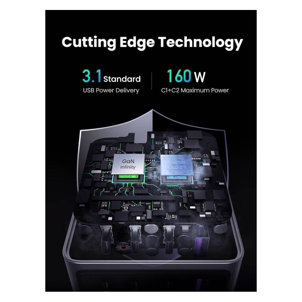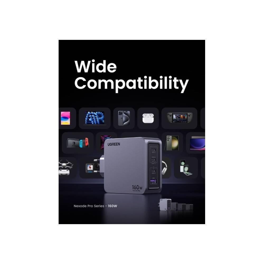 მობილურის დამტენი UGREEN X763 (25877) Nexode Pro, 160W, Type-C, USB, Grey