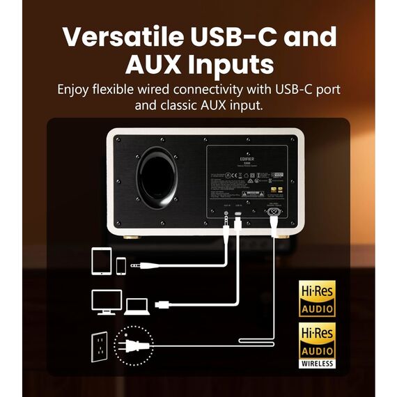 დინამიკი Edifier S300, 80W, Bluetooth, Wi-Fi (Apple AirPlay), USB-C, AUX, Tabletop Speaker, Ivory