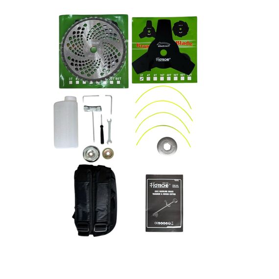 აქსესუარები: 1 ცალი სათიბის თავი; 1 ცალი 3 კბილიანი დანა; 1 ცალი 40 კბილიანი დანა; 1 ცალი მხრის ქამარი; 1 ცალი საწვავის ავზი; 1 ცალი T-ტიპის განჩი; 2 ცალი სახრახნისი