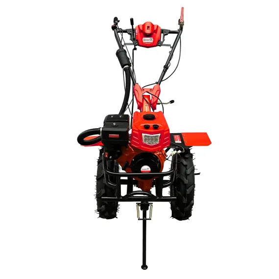 დამატებითი ინფორმაცია: SKORFI-ის 9 ცხენისძალიანი მოტობლოკი შესანიშნავი არჩევანია მათთვის, ვინც ეძებს საიმედო და გამძლე ბენზინის მოწყობილობას რთული სასოფლო-სამეურნეო სამუშაოებისთვის. აღჭურვილია 177F ძრავით, რომელიც უზრუნველყოფს 3600 ბრუნს წუთში და გამორჩეულ ენერგიას. მოწყობილობა მუშაობს 10W40 ტიპის ზეთით (1.0 ლიტრი), რაც ხელს უწყობს ძრავის გამართულ და ხანგრძლივ მუშაობას. 5.5 ლიტრიანი საწვავის ავზი საშუალებას გაძლევთ იშრომოთ უწყვეტად დიდი ხნის განმავლობაში. დიდი ზომის რედუქტორი 80W90 ზეთით (2.8 ლიტრი) ზრდის გადაცემის გამძლეობასა და სიცოცხლის ხანგრძლივობას. 32 მმ სისქის ღერძი და 5.00–12 ზომის საბურავები უზრუნველყოფენ მაღალი გამტარობის სტაბილურობას სხვადასხვა რელიეფზე. გადაცემათა კოლოფი გთავაზობთ ოთხი სიჩქარის არჩევანს: უკუსვლა, ნეიტრალი, პირველი და მეორე სიჩქარე.