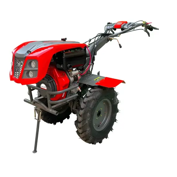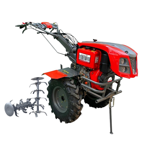 დამატებითი ინფორმაცია: SKORFI-ის 12 ცხენისძალიანი მოტობლოკი იდეალური არჩევანია ძლიერი და ხანგრძლივვადიანი სამუშაოსთვის. იგი აღჭურვილია 188FE მოდელის დიზელის ძრავით, რომელიც უზრუნველყოფს 3600 ბრუნს წუთში, რაც გამძლეობასა და სტაბილურ მუშაობას ნიშნავს. ძრავის ზეთის მოცულობა შეადგენს 1.7 ლიტრს (10W40), ხოლო საწვავის ავზი გათვლილია 5.5 ლიტრზე, რაც საშუალებას გაძლევთ იმუშაოთ ხანგრძლივად შეჩერების გარეშე. მოტობლოკს აქვს დიდი ზომის რედუქტორი, რომელიც ავსებულია 2.8 ლიტრი 80W90 ტიპის ზეთით – იდეალურია დატვირთული პირობებისთვის. 32 მმ სისქის ღერძი და 5.00-12 ზომის საბურავები უზრუნველყოფს სტაბილურ და მყარ გადაადგილებას. გადაცემათა კოლოფი მოიცავს უკუსვლას, ნეიტრალს, პირველ და მეორე სიჩქარეს. მოწყობილობა აღჭურვილია ძლიერი 36 ამპერიანი ელემენტით და ელექტრო სტარტერით – რაც ერთვის მაქსიმალურ მოხერხებულობას. მოწყობილობის წონა შეადგენს 162 კილოგრამს, ხოლო კომპლექტაციაში მოყვება 40 ცალი სათოხნი პირი.