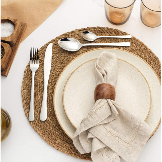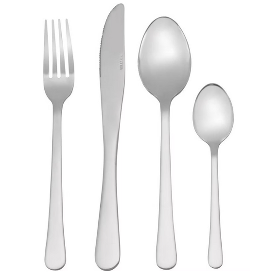 კომპლექტში: 6 x დესერტის კოვზი; 6 x ჩანგალი; 6 x დანა; 6 x ჩაის კოვზი