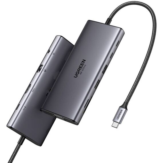 USB-C ჰაბი UGREEN CM639 (45520), Type-C, USB-A, HDMI, VGA, RJ45, SD/TF, 3.5MM, PD, 11-in-1 USB-C Hub, Grey