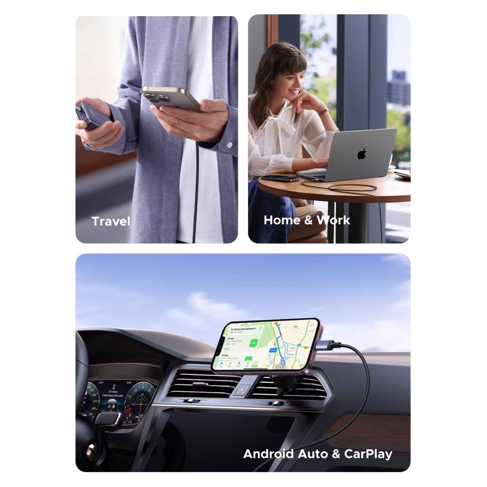 USB კაბელი UGREEN L532 (65907), 240W, Type-C to Type-C PD Fast Charging Cable, 1m, Space Gray
