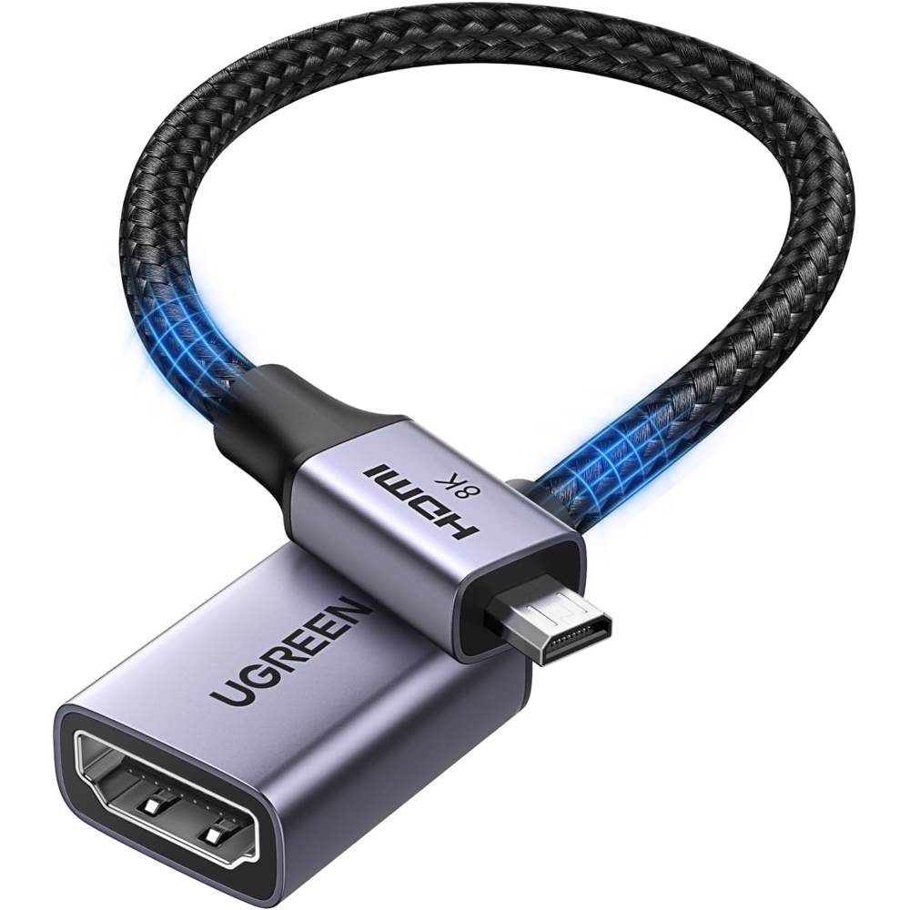 ადაპტერი UGREEN HD182 (65593), 8K Micro HDMI to HDMI Cable, 20cm, Grey/Black