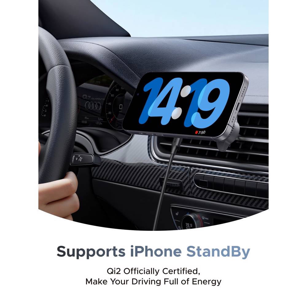მანქანის უსადენო დამტენი UGREEN W758 (55967) MagFlow, 25W, Magnetic Wireless Car Charger, Grey