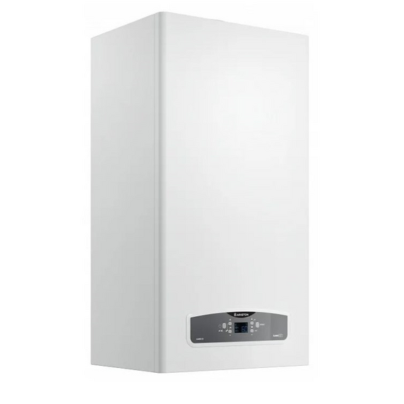გაზის კედლის ქვაბი Ariston Cares XC 24 FF NG, რომელიც არის კონვექციური მოწყობილობა, ორ კონტურიანი, დახურული წვის კამერით.