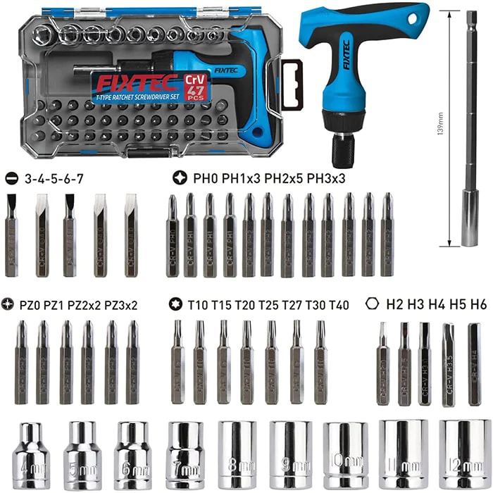 სახრახნისების ნაკრები 47 ნაჭ FIXTEC FHSDK47
