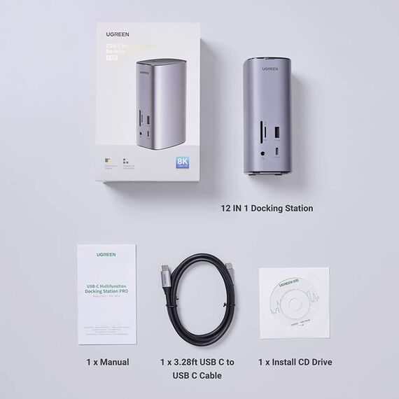USB-C ჰაბი UGREEN CM555 (90325), Type-C Docking Station, HDMI, USB, Ethernet, SD/TF, 3.5mm, Gray