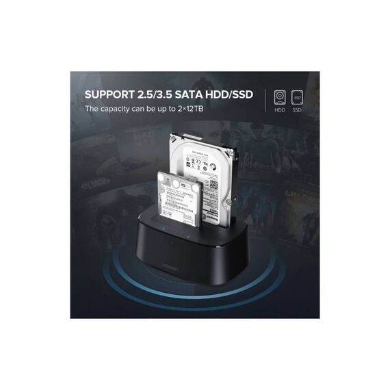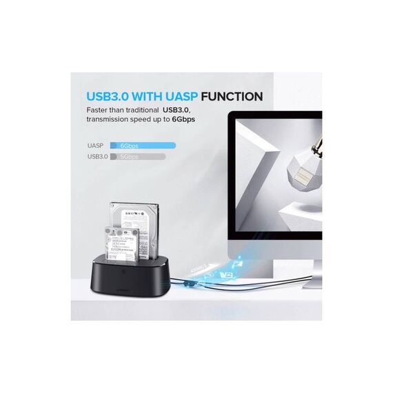 მყარი დისკის წამკითხველი UGREEN CM198 (50857) USB 3.0 to SATA Dual-Bay Hard Drive Docking Station