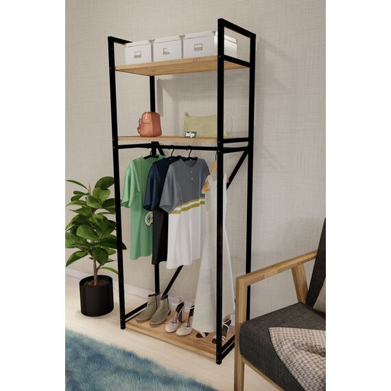 ღია გარდერობი/ფეხსაცმლის თარო ფიჭვის ფაქტურით