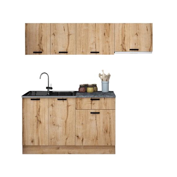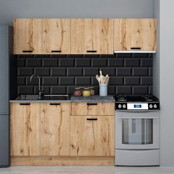 თურქული წარმოების სამზარეულოს კომპლექტი. არ მოჰყვება ნიჟარა და ონკანი, ასევე სურათზე გამოსახული აქსესუარები განკუთვნილია საჩვენებლად და არ შედის ფასში.