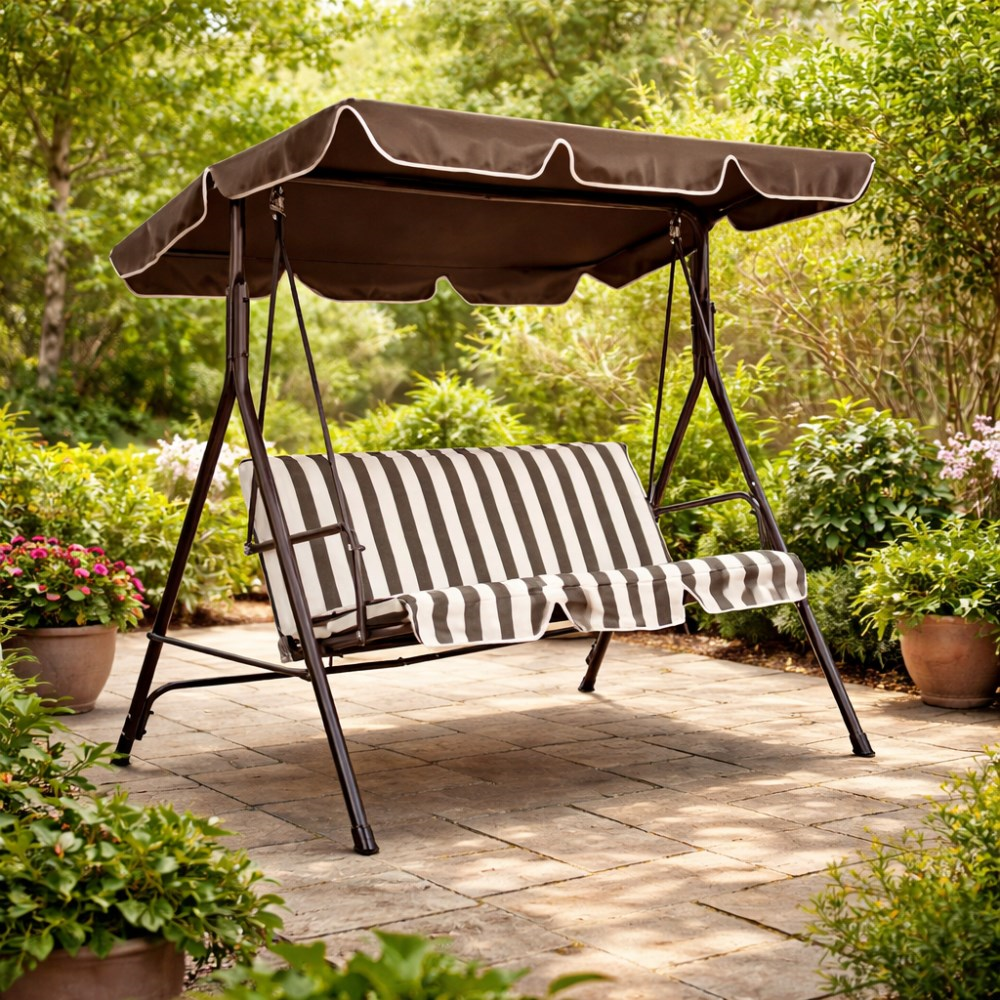 საქანელა ბაღის 3 ადგილიანი 170x110x152 სმ თეთრი/ყავისფერი