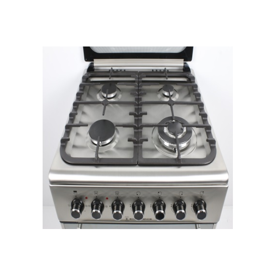 - ზედა ღუმელი: ქვედა წვა გაზი, ზედა წვა ელექტრო, განათება, ორმაგი შუშის კარი, შიდა მოხსნადი შუშით, 1 ბადე და 1 ლანგარი.