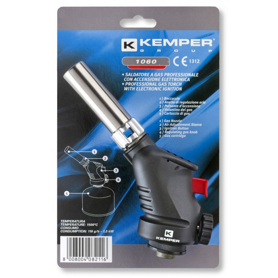 Kempergroup 1060K არის შესადუღებელი ლამპა პიეზოელექტრო ანთებით, ერგონომიული სახელურით და აირის ხარჯის რეგულირებით. უზრუნველყოფს მუშაობას გადაბრუნებულ მდგომარეობაშიც.
