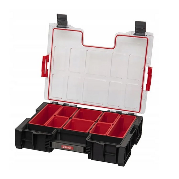 მოდულური ორგანაიზერი 8 მოსახსნელი კონტეინერით და 2 განყოფილებით, იდეალურია როგორც დამოუკიდებელი ორგანიზატორი, ან შეიძლება გაერთიანდეს Qbrick PRO სისტემაში.