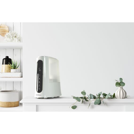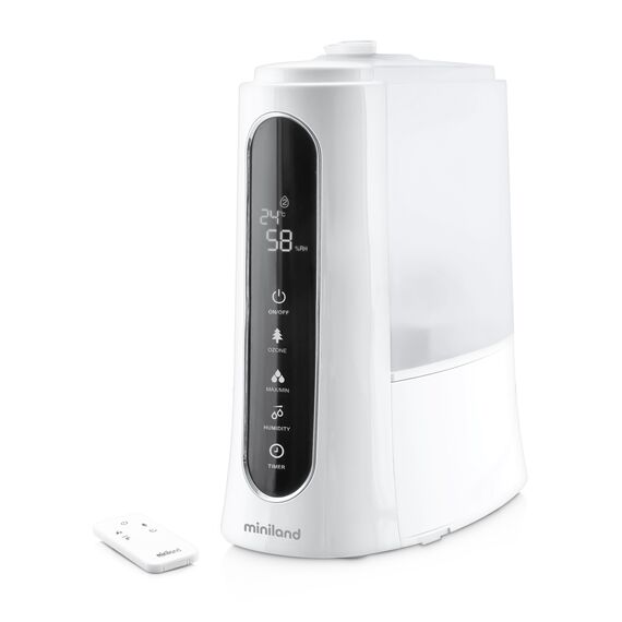 ჰაერის დამატენიანებელი MINILAND HUMITOUCH PURE განვადებით, გარანტიითა და ადგილზე მიწოდებით მთელი საქართველოს მასშტაბით. ჰაერის დამატენიანებლის მაქსიმალური ტევადობა 5.0 ლიტრი გახლავთ, დატენიანების არეალი 40 მ²-ია, შეუფერხებლად მუშაობის მაქსიმალური დრო კი 50 საათი. HUMITOUCH PURE ოზონის ჰაერის დამატენიანებელია, რომელიც ასუფთავებს სახლის ატმოსფეროს. აფერხებს ბაქტერიის წარმოქმნას, უსიამოვნო სუნის გავრცელებას და საშუალებას გაძლევთ დაარეგულიროთ ტენიანობის წილი ოთახში. ასევე გააჩნია განყოფილება სუნამოების, ეთერზეთებისა და არომათერაპიისთვის. აპარატის გაკონტროლება დისტანციური მართვის პულტითაა შესაძლებელი. ელეგანტური ეკრანის დახმარებით შეგიძლიათ წაიკითხოთ სრული ინფორმაცია ოთახის შესახებ ერთი შეხედვით. აპარატს ასევე აქვს ნაზი ლურჯი ნათება, რომლის ჩართვა და გამორთვა ასევე დისტანციური მართვის ხელსაწყოთია შესაძლებელი. გარანტია მოცემულ მოდელზე 2 წელი ვრცელდება. MINILAND-ის პროდუქციის ხარისხი აღიარებულია ექსპერტების მიერ, გამოირჩევა მაღალი ხარისხით, საუკეთესო ფასითა და მომხმარებელთა სანდოობით.