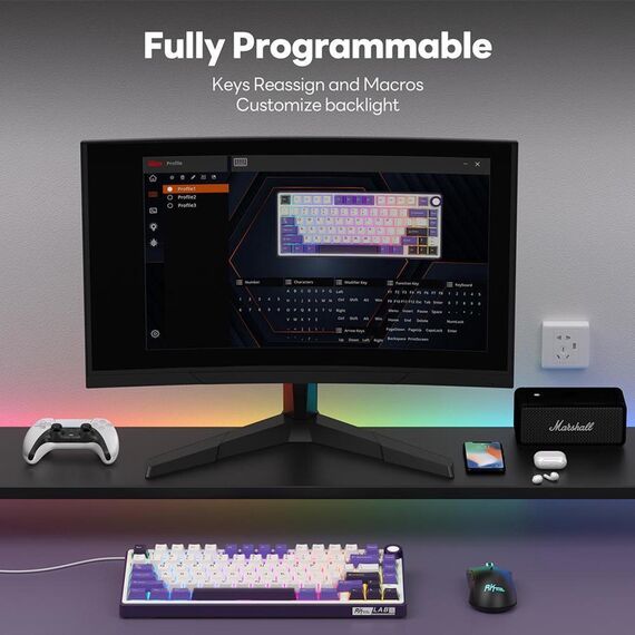 კლავიატურა Royal Kludge RK R75 RGB Mechanical Keyboard, K silver switch, Hot Swappable, Type-C wired, Blackberry