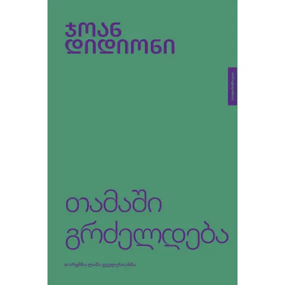დამატებითი ინფორმაცია: „თამაში გრძელდება“ – მერაია უაიეთი განქორწინებული და მეგობრებისგან იზოლირებული ახალგაზრდა ქალია, რომელიც სრულიად დაცლილია სურვილებისა და მოტივაციისგან. იგი იმ თაობის ტიპური განსახიერებაა, რომელიც ჭარბმა თავისუფლებამ დააავადა და ემოციებისგან განძარცვა. ჯოან დიდიონის ეს პატარა რომანი გვიანდელი 60-იანი წლების ამერიკული ცხოვრების წესს აშიშვლებს და მთელი თაობის განწყობას წარმოგვიდგენს: საზოგადოება გაბეზრებულია, მოწყენილია, იმედგაცრუებულია, რაზეც ავტორი მკითხველს დაუნდობლად მოუთხრობს. მოქმედება ვითარდება კარგისა და ცუდის მიჯნაზე – ჰოლივუდში, ლას ვეგასსა და მოჰავეს უდაბნოს მწირ ხრიოკებში, რაც წიგნის ხასიათსაც ძერწავს და მონათხრობსაც ჰმატებს სიმძაფრეს. გამოსვლიდან ამდენი წლის შემდეგაც წიგნი უკიდურესად შეგრძნებითია, რაც მერაია უაიეთის ამბავსა და კრიზისში აღმოჩენილი ნაღები საზოგადოების ჯურღმულში გვექაჩება და გვითრევს.