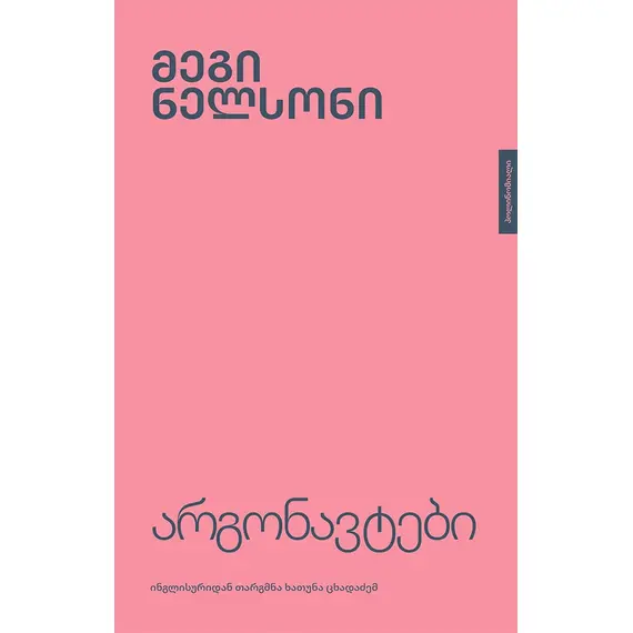 დამატებითი ინფორმაცია: „არგონავტები“ ერთი დიდი სიყვარულის ამბავს გვიყვება. რეალურ ამბავს, რომელიც თავად მეგი ნელსონს გადახდა თავს და რომლის შესახებაც ის პირველ პირში, პირადი პერსპექტივიდან მოგვითხრობს. თემები, რომლებსაც ეს ამბავი მოიცავს, თითქოს ჩვეულებრივია და ტრადიციულიც – სიყვარული, სექსი, ქორწინება, სხეული, ოჯახი, მშობიარობა, დედობა. მაგრამ ამ ფიქრიან და მშვენიერ წიგნში ეს ცნებები ფართოვდება, ირყევა, იცვლება და ინტენსიური, რადიკალური ემოციით იწყებს ფეთქვას. სალომე ასათიანი „სუბიექტი, რომელიც ამბობს „მიყვარხარ“, იმ არგონავტს ჰგავს, „რომელიც გემს განაახლებს, მაგრამ სახელს არ გამოუცვლის“. შეყვარებული ადამიანის მიერ წარმოთქმული „მიყვარხარ“ „არგოს“ ჰგავს, რომლის ნაწილებიც დროთა დინებაში გამოიცვლება, სახელი კი იგივე რჩება. ამ სიტყვის მნიშვნელობა ყოველი წარმოთქმისას, ყოველი კონკრეტული ვითარების თანახმად უნდა იცვლებოდეს, რადგან „თავად სიყვარულისა და ენის დანიშნულება ისაა, რომ ერთსა და იმავე ფრაზას მუდამ ახალი შინაარსი შესძინოს.“ ამერიკელი მწერალი და პოეტი მეგი ნელსონი 1973 წელს კალიფორნიაში დაიბადა. ასწავლიდა ლიტერატურასა და შემოქმედებით წერას. ამჟამად პროფესორია სამხრეთ კალიფორნიის უნივერსიტეტში. მიღებული აქვს არაერთი ჯილდო და ფელოუშიპი, მათ შორის 2016 წელს მაკართურის სახელობის ე.წ. “გენიოსის გრანტი”. ნელსონი არამხატვრული ლიტერატურის ახალ ფორმას აყალიბებს და ჩვენს დროში აქტუალურ თემებს ყოველდღიური პირადი გამოცდილებით ნაკარნახევ სიუჟეტებში ასახავს. ის მკითხველს იწვევს, რათა ერთად მიჰყვნენ იმ აზრთა მდინარებას, რითაც პირად და, ერთგვარად, უნიკალურ გამოწვევებთან გამკლავებას ცდილობს. ამისთვის უხვად იშველიებს ფემინისტურ და ქვიარ თეორიებს, კულტურისა და ხელოვნების კრიტიკას, ფილოსოფიასა და ფსიქოლოგიას. ნაწარმოებებში ავტორი სკეპტიციზმით აკვირდება ტრუიზმებსა და იდეოლოგიებს და საკუთარ თავსაც მუდმივად აიძულებს განსხვავებული პერსპექტივების გააზრებას.