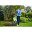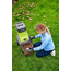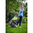 ჭრის სისტემა - ორი მბრუნავი ფოლადის პირი. მუშაობისას აუცილებელია გამოიყენოთ სპეციალური მბიძგავი და მოარიდოთ თითების შეხება ჭრის მექანიზმთან. კარკასი სახელურებით და დიდი ბორბლებით, ბაღში ადვილი გადაადგილებისთვის. ნარჩენების კონტეინერი 40 ლ.