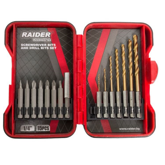 ნაკრები ექვსწახნაგა ბურღების და ბიტების Raider 157795 15 ც