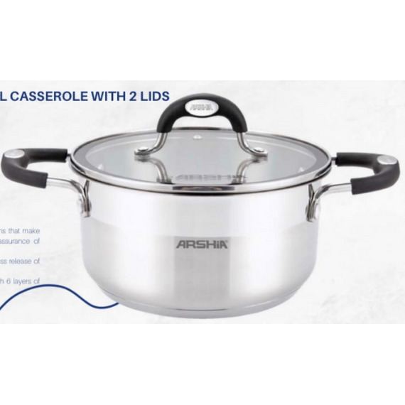 ქვაბი მეტალის 18x9სმ მინის და მეტალის თავსახურით arshia SS478-3077
