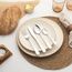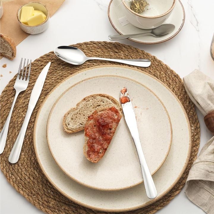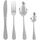 კომპლექტაცია: 4 x ჩანგალი, 4 x ჩაის კოვზი, 4 x დესერტის კოვზი, 4 x დანა