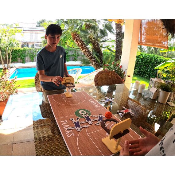 • კომპლექტში შედის: სათამაშო დაფა, 2 კალათი, 1 ბურთი, 5 ლურჯი და 5 წითელი მოთამაშე, მონეტა