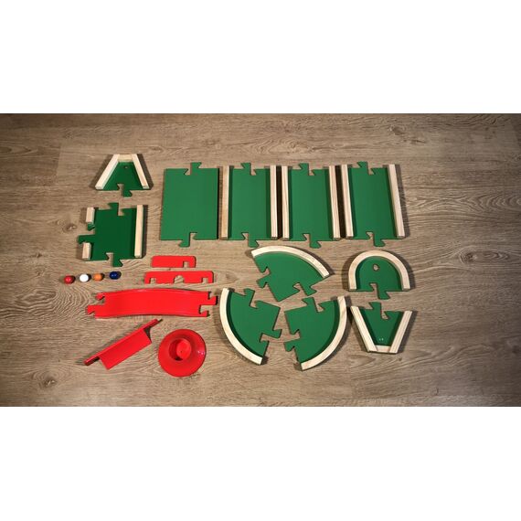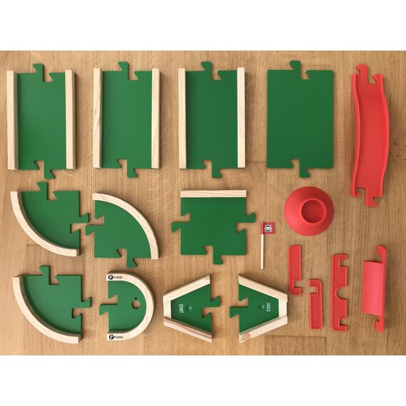კომპლექტში შედის: 3 სწორი ნაწილი, 1 სწორი ნაწილი ბარიერის გარეშე, 3 მოსახვევი, 2 საწყისი ნაწილი, 1 ფინალური ნაწილი, 1 სამმაგი ნაწილი (Battle Mode-სთვის), 1 ხიდი, 1 გვირაბი, 1 ნახტომი, 1 ვულკანი, 2 გვერდითი ნაწილი, სხვადასხვა ბარიერები, 8 ბურთი, ქულების დაფა
