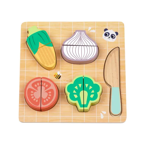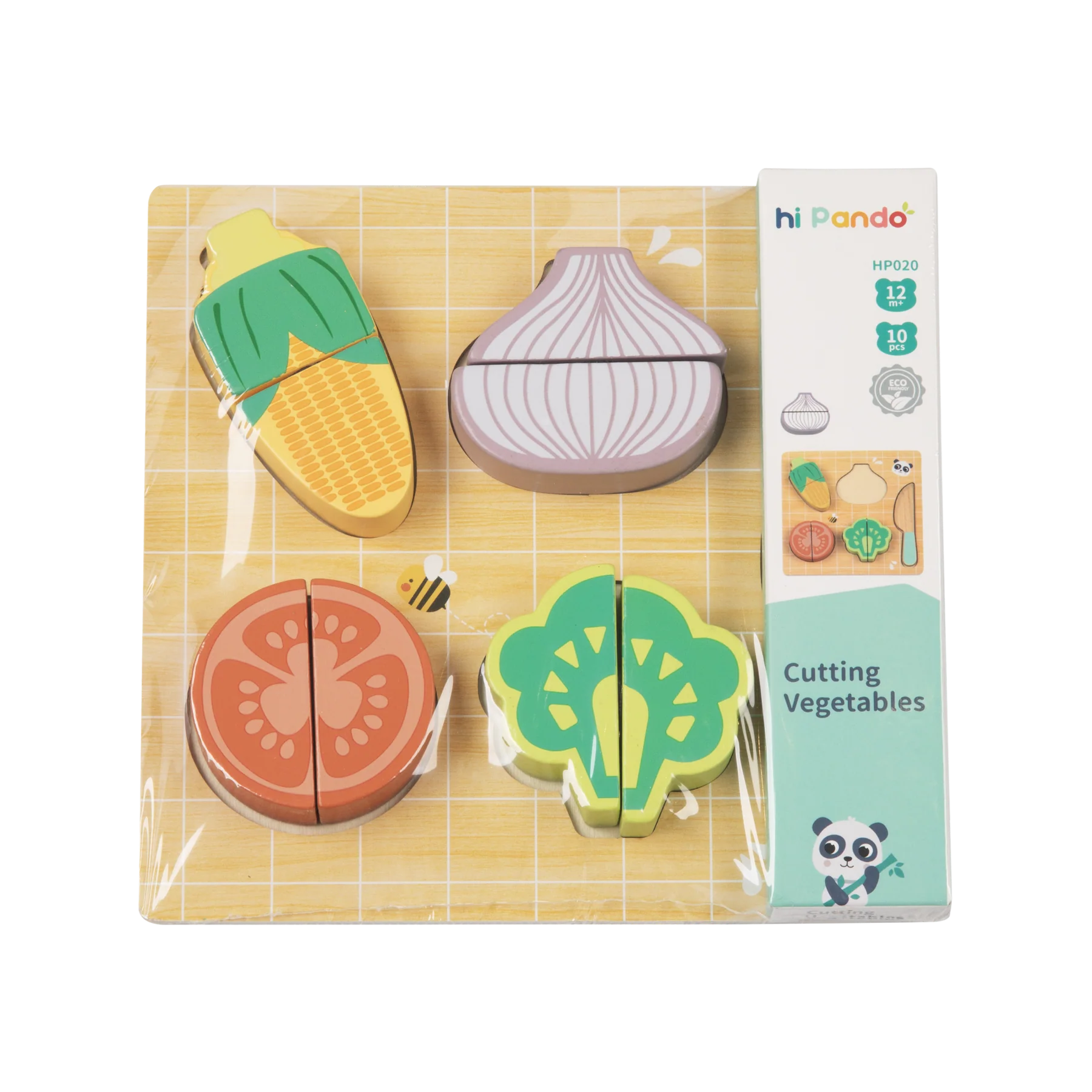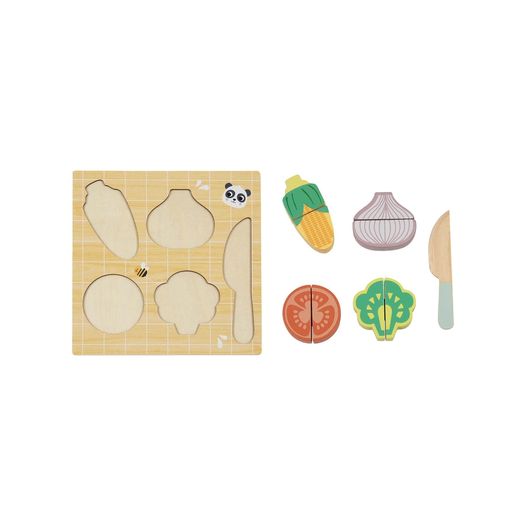 ხის როლური სათამაშო ნაკრები - ბოსტნეულის დასაჭრელი / Cutting Vegetables – Wooden Role Play Toy