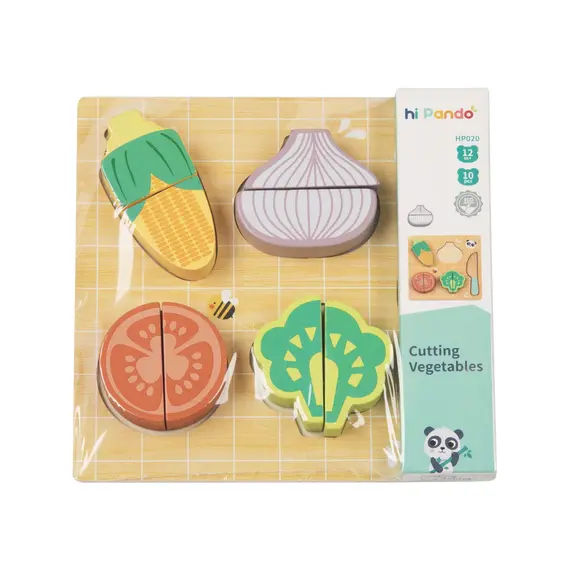 Hi Pando: ის საჭმლის დასაჭრელი ნაკრები პატარებს შესაძლებლობას აძლევს „დაჭრან“ ხის პროდუქტები სათამაშო დანით, გაიცნონ მათი ფერები და ფორმები და შეისწავლონ ჯანსაღი კვების ელემენტები თამაშის გზით