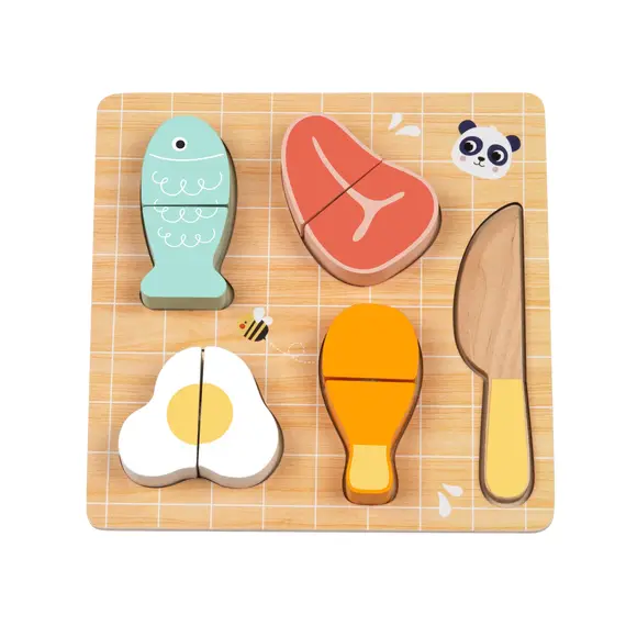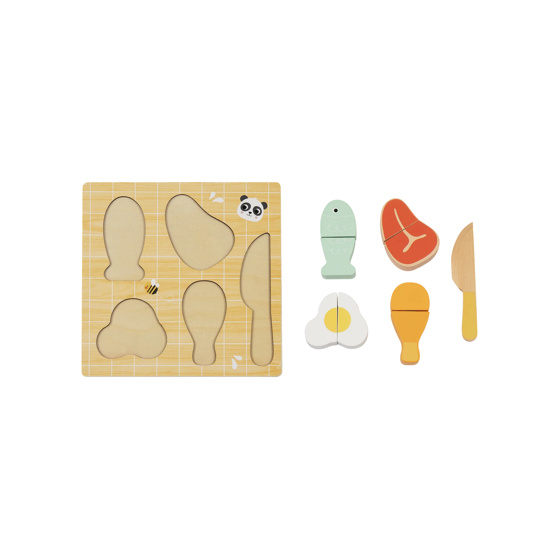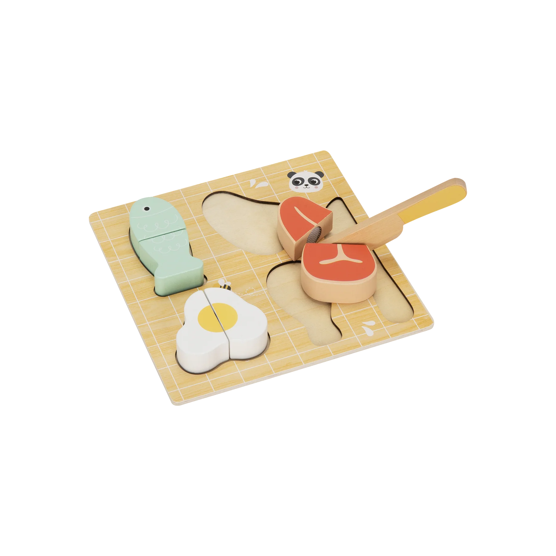 ხის როლური სათამაშო ნაკრები - საჭმლის დასაჭრელი / Cutting Food – Wooden Role Play Toy