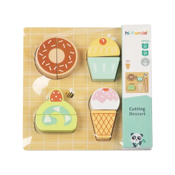 ხის როლური სათამაშო ნაკრები - დესერტის დასაჭრელი / Cutting Dessert – Wooden Role Play Toy