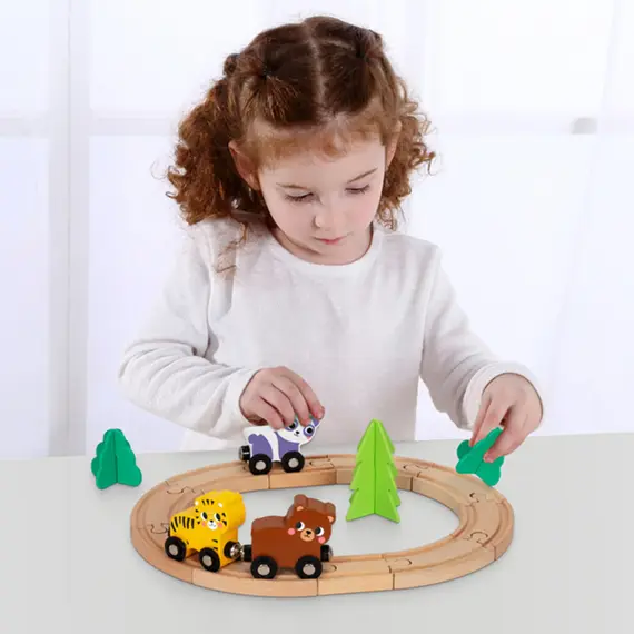 ხის საგანმანათლებლო სათამაშო - ცხოველების მატარებლის ნაკრები / Animal Train Set – Wooden Educational Toy