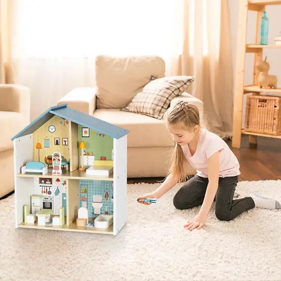 ხის როლური სათამაშო კომპლექტი - თოჯინების სახლი / Doll House – Wooden Role Play Set