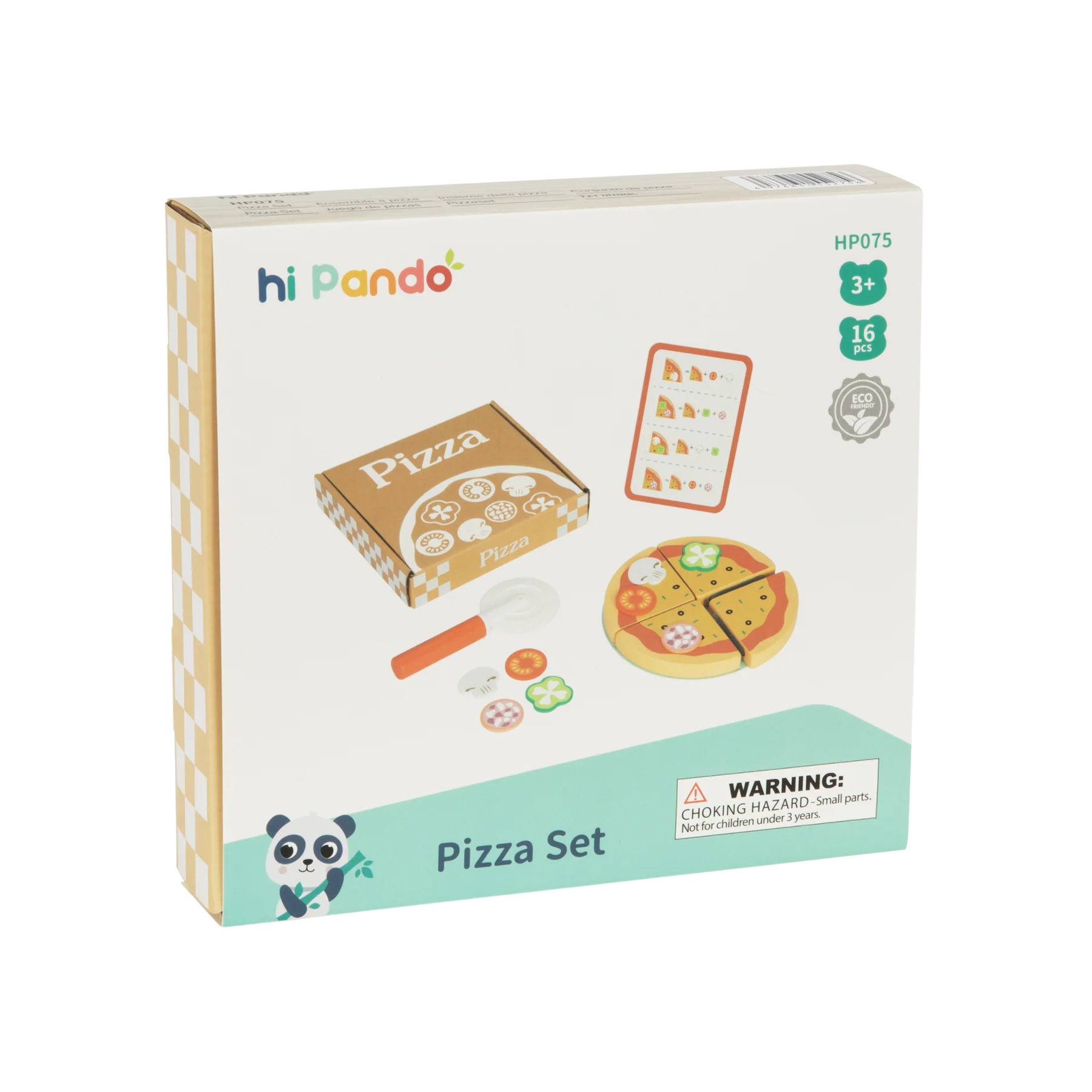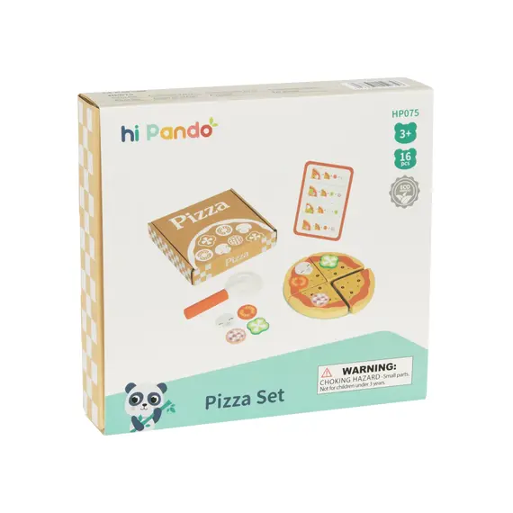 დამატებითი ინფორმაცია: Hi Pando-ის პიცის ნაკრები საშუალებას აძლევს ბავშვებს საკუთარი ხელით „დაამზადონ“ ხის პიცა, შეურჩიონ ინგრედიენტები, გაჭრან ნაჭრებად და გაუზიარონ მეგობრებს. თამაში ავითარებს მოტორულ უნარებს, კომუნიკაციისა და სოციალურ უნარებს, ხოლო კრეატიულ სცენარებში ჩართვა ხელს უწყობს დამოუკიდებელ როლურ თამაშს. Montessori-ით შთაგონებული დიზაინი აძლიერებს თვითგამოხატვას და სწავლას თამაშით.