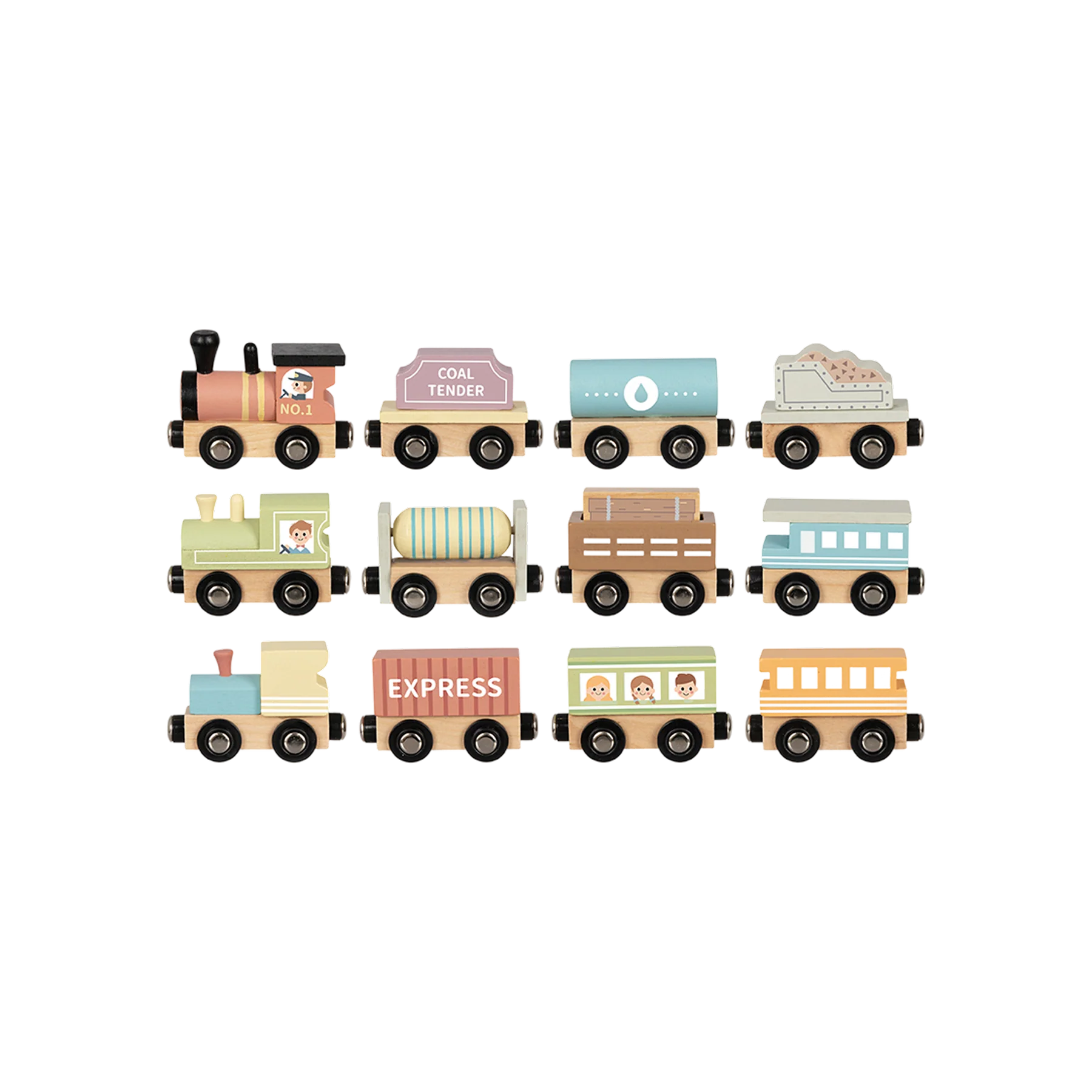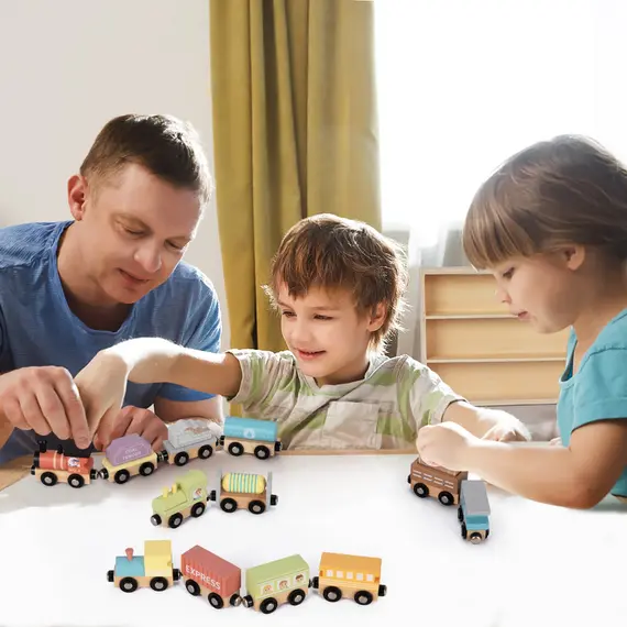 სცენური სათამაშო - ხის მატარებლის ნაკრები Montessori