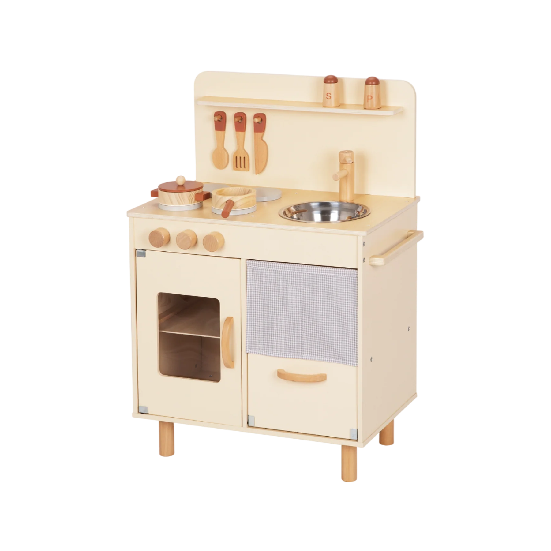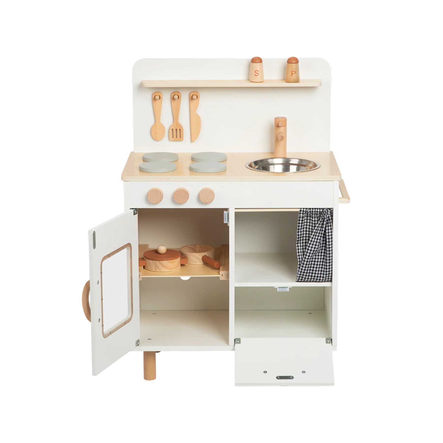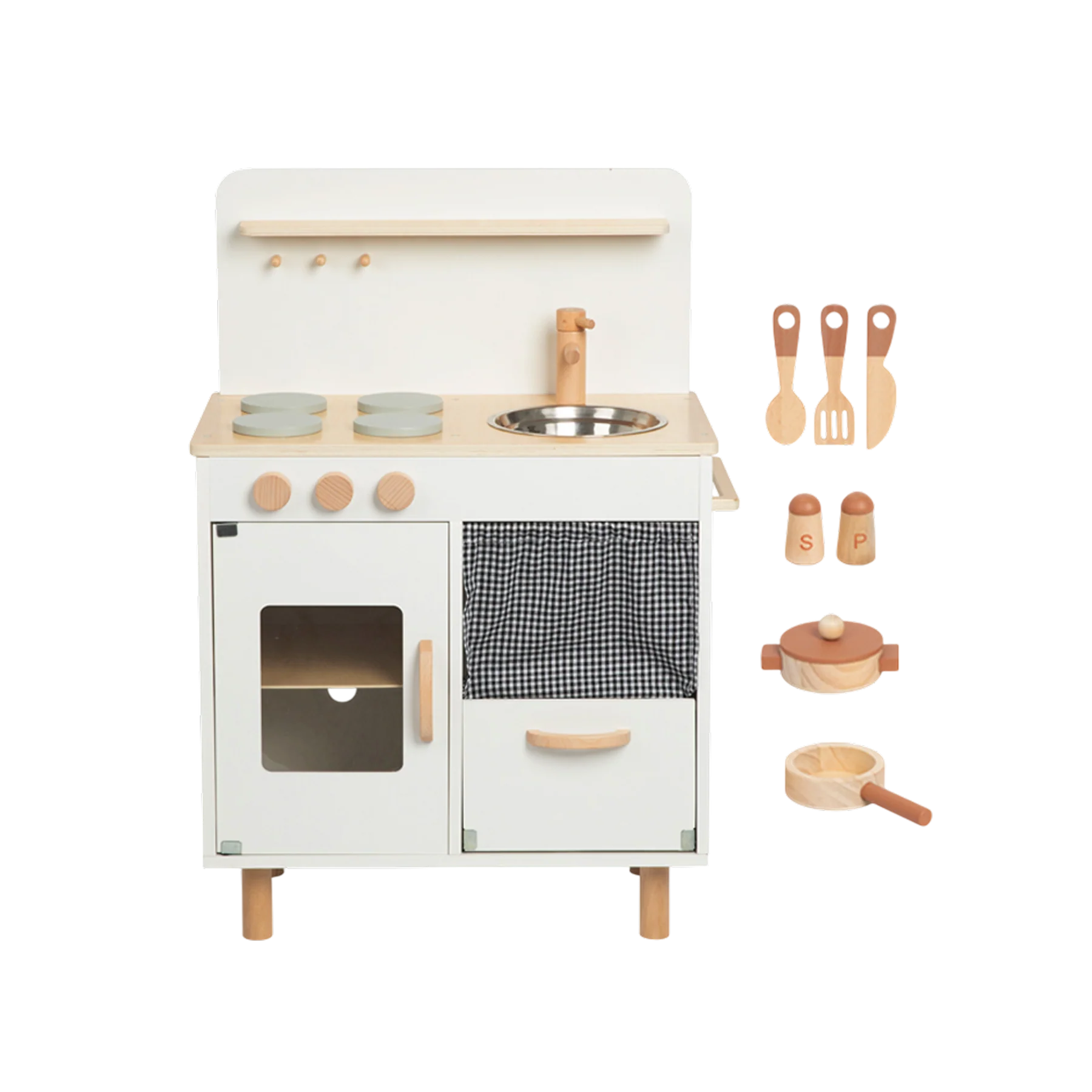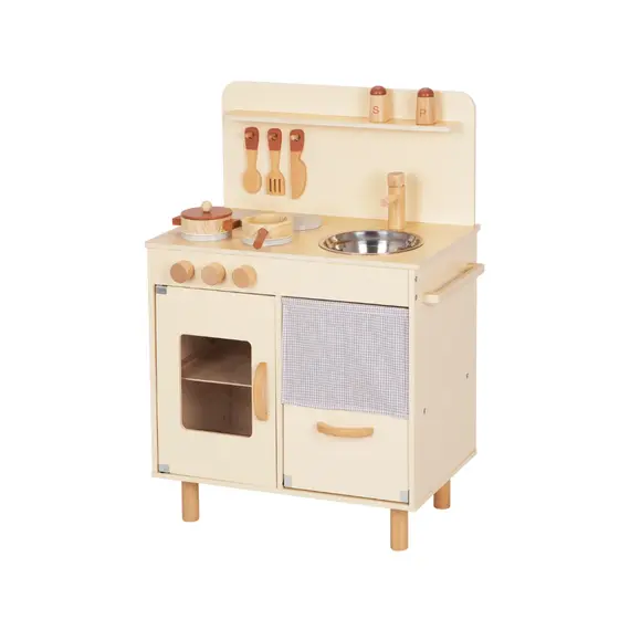 დამატებითი ინფორმაცია: სათამაშო ეხმარება ბავშვს რეალისტურ გარემოში განახორციელოს ყოველდღიური მოქმედებები, განივითაროს მოტორიკა და სოციალური უნარები, ხოლო დამოუკიდებელი როლური თამაში აძლიერებს მის თავდაჯერებას და კომუნიკაციურ შესაძლებლობებს. ეს ხის სათამაშო იდეალურია ბავშვებისთვის, რომლებსაც უყვართ სამზარეულოს სცენარების გათამაშება და საკუთარი პატარა „რესტორნის“ შექმნა. TOOKY TOY PREMIUM-ის სამზარეულოს ნაკრები მოიცავს 10 კომპონენტს — ღუმელი, ღილაკები, ონკანი და სხვა დეტალები ქმნის სრულფასოვან იმიტირებულ სივრცეს, სადაც ბავშვი სწავლობს თამაშით, Montessori მეთოდზე დაფუძნებული მიდგომით.